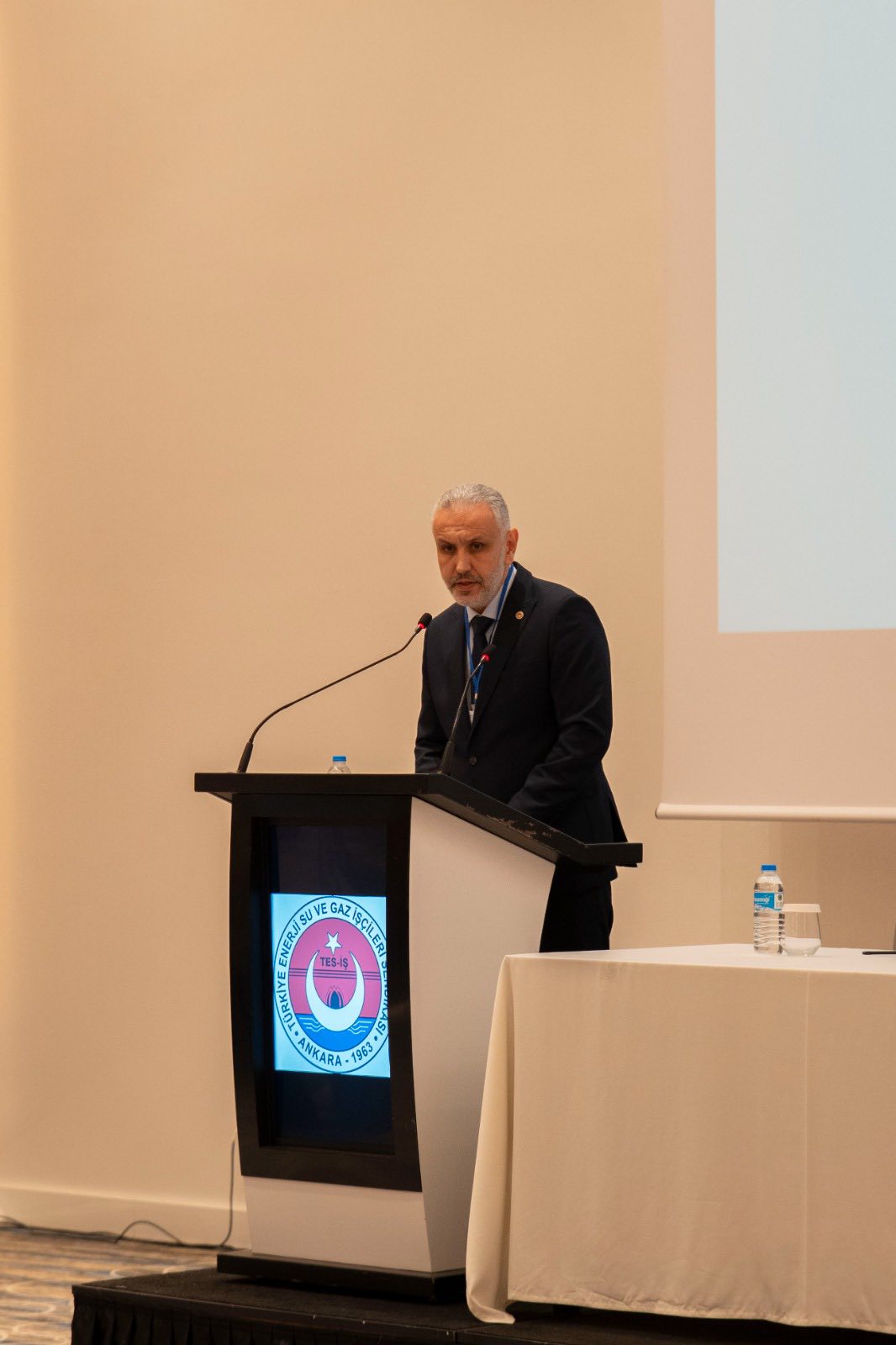 Genel Başkanımız İrfan KABALOĞLU, Kongre’de yaptığı konuşmasında, geçmişten bugüne Adapazarı Şubemize bağlı işyerlerinde yaşananları ve sendikamızın yürüttüğü çalışmaları değerlendirdi. KABALOĞLU, SEDAŞ’ın özelleştirilmesi öncesinde taşeron çalışanların örgütlenmeleri ve toplu iş sözleşmesi kapsamına alınmaları, SEDAŞ taşeron işçilerinin kadroya alınmaları ve haklarının iyileştirilmesi için sahada ve hukuki düzeyde verilen mücadeleleri anlattı. TES-İŞ’in her zaman üyeleriyle birlikte hareket ettiğini vurgulayan KABALOĞLU, enerji işçilerinin elektrik, su ve gaz hizmetlerinde zor ve çok tehlikeli işlerde büyük fedakarlıklar göstererek çalıştıklarını ve Türkiye’nin enerji bağımsızlığı için önemli bir rol oynadıklarını belirtti.