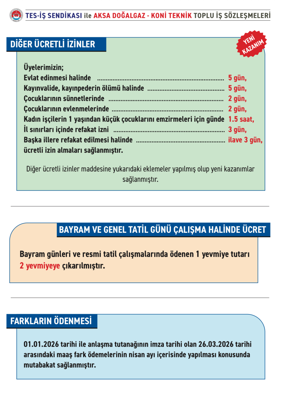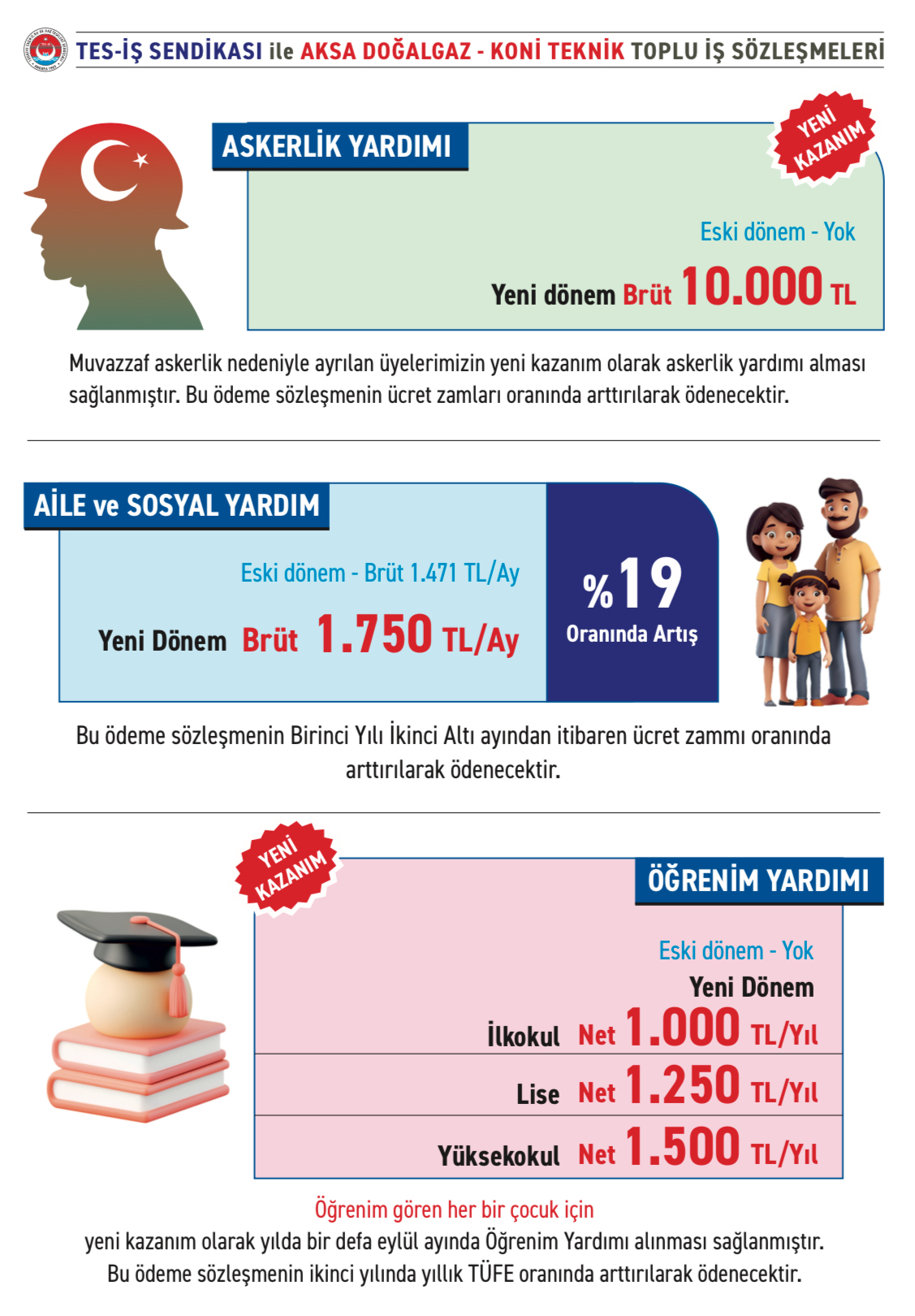 AKSA DOĞALGAZ ve KONİ TEKNİK A.Ş. İşyerlerimizde yürütülen toplu iş sözleşmesi görüşmelerimiz; katılımcı bir yaklaşım ve titizlikle sürdürülen şeffaf müzakereler sonucunda, üyelerimiz adına elde ettiğimiz önemli kazanımlarla imzalanmıştır.