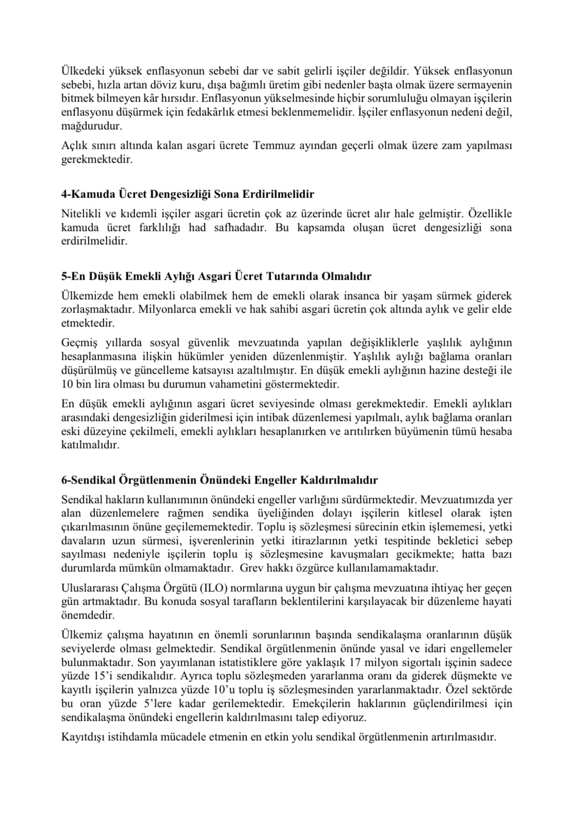 TÜRK-İŞ, HAK-İŞ ve DİSK olmak üzere üç işçi Konfederasyonu 9 Temmuz 2024 tarihinde TÜRK-İŞ Genel Merkezinde ortak bir basın toplantısı düzenlediler. Konfederasyonlar adına açıklamaları; TÜRK-İŞ Genel Başkanı Ergün Atalay, HAK--İŞ Genel Başkanı Mahmut Arslan ve DİSK Genel Başkanı Arzu Çerkezoğlu yaptı. Toplantıya TÜRK-İŞ Genel Başkan Yardımcısı ve aynı zamanda Genel Başkanımız olan İrfan Kabaloğlu ve Konfederasyonların yöneticileri ile bazı sendikaların Genel Başkanları da katıldı. Çok sayıda gazeteci ve basın mensuplarının yer aldığı toplantıda Konfederasyonlar İşçiler için “İnsan Onuruna Yakışır Bir Yaşam” talep ettiler. Konfederasyonların yayınladığı ve aşağıda yer alan basın açıklamasında “Vergide Adalet”, “Enflasyonla Mücadelenin Düşük Ücretlerle Yapılamayacağı”, “Asgari Ücret Artışı”, Kamuda Ücret Dengesizliğinin Sona Erdirilmesi”, “En düşük Emekli Aylığının Asgari Ücret Tutarına Getirilmesi”, “Sendikal Örgütlenmenin Önündeki Engellerin Kaldırılması”, “Kamu Taşeron İşçilerinin Daimi Kadroya Alınması”, “Tasarruf Tedbirleri Gerekçesiyle Çalışanların Haklarının Aşındırılmaması”, “İş Kazaları ve Meslek Hastalıkları”, “Çalışma Yaşamında Ayrımcılığın Son Bulması” konularına yer verildi.